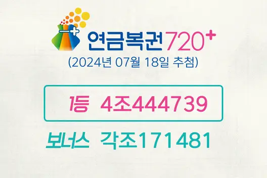 동행복권 연금복권720+ 220회(2024년 07월 18일 추첨) 1등 당첨번호 4조444739 보너스 각조171481