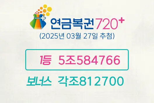 동행복권 연금복권720+ 256회(2025년 03월 27일 추첨) 1등 당첨번호 5조584766 보너스 각조812700