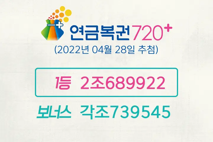 동행복권 연금복권720+ 104회, 추첨일 2022년 04월 28일 (목), 의 당첨 결과가 발표됐다. 이번 회차 당첨번호와 당첨게임 수 등을 정리하도록 하겠다. 연금복권720+의 1등 당첨 번호는 2조689922이다. 연금복권 1등은 조 단위를 포함한 일곱자리 숫자가 모두 일치 해야 당첨이 된다. 2등은 1등의 조 단위를 제외한 나머지 여섯자리가 일치해야 한다. 보너스 번호도 2등과 동일한 당첨금을 부여한다. 이번 회차 보너스 번호는 각조739545이다. 연금복권은 연금복권이라는 이름에서 알 수 있듯이 로또복권처럼 일시금 지급이 아닌 당첨금을 분할해 매달 지급하는 연금방식이다. 10년에서 20년 가량 기한을 정해놓고 매달 지급한다.