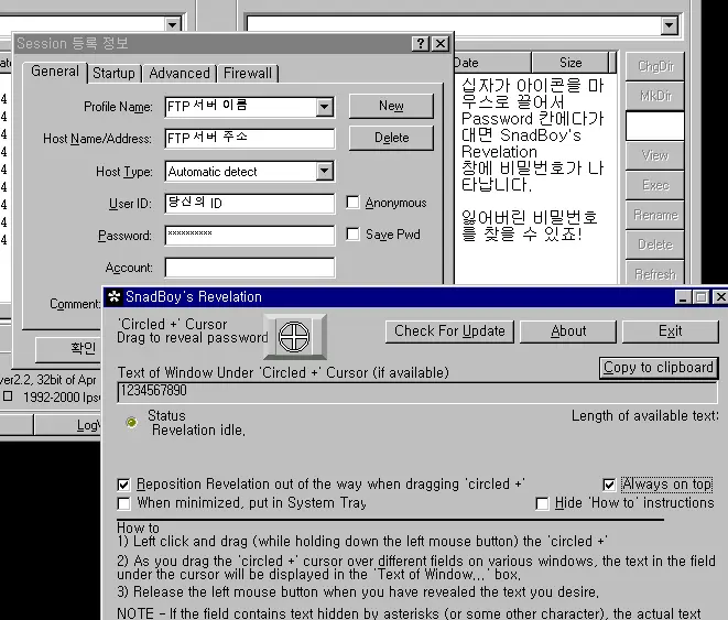 만약 FTP 프로그램이나 Outlook Express 같은 프로그램에 자신의 계정과 비밀번호를 기억/저장시켰는데, 항상 자동접속하다보니 비밀번호가 더이상 기억이 안나십니까?