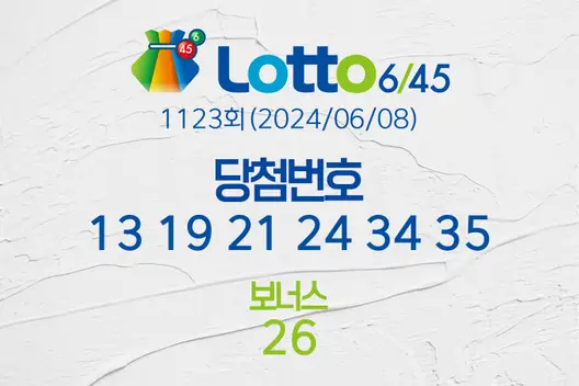 동행복권 로또 6/45 1123회, 추첨일 2024년 06월 08일 (토),의 당첨번호 결과가 발표되고 복권 총 판매액과 당첨금, 1등 배출 복권 판매점 등이 모두 공개됐다. 1123회차 총 로또복권 판매액은 113,142,957,000원이고 로또 복권 당첨 번호는 13, 19, 21, 24, 34, 35 이다. 1등은 로또당첨번호 여섯 개가 모두 일치 해야 당첨이 된다. 2등 보너스 번호는 26이다. 로또당첨번호 중 임의의 다섯 개와 보너스 번호가 일치 하면 2등이다. 이하의 내용에서 당첨결과와 1등 배출점 등을 상세히 다루도록 하겠다.