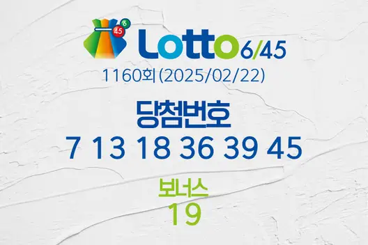 동행복권 로또 6/45 1160회, 추첨일 2025년 02월 22일 (토),의 당첨번호 결과가 발표되고 복권 총 판매액과 당첨금, 1등 배출 복권 판매점 등이 모두 공개됐다. 1160회차 총 로또복권 판매액은 123,177,536,000원이고 로또 복권 당첨 번호는 7, 13, 18, 36, 39, 45 이다. 1등은 로또당첨번호 여섯 개가 모두 일치 해야 당첨이 된다. 2등 보너스 번호는 19이다. 로또당첨번호 중 임의의 다섯 개와 보너스 번호가 일치 하면 2등이다. 이하의 내용에서 당첨결과와 1등 배출점 등을 상세히 다루도록 하겠다.